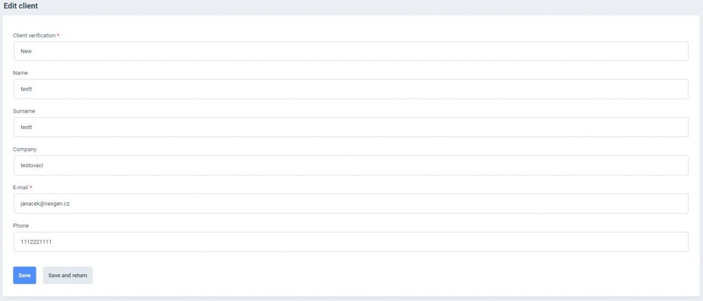 The submodule Clients serves for gathering contact details of new and/or already existing Ticketing System clients.